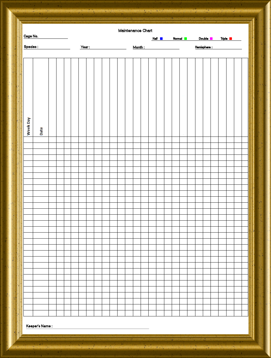 This is a demonstration version of the blank maintenance chart. It can be used however you like and is simply an example of how it may be used.